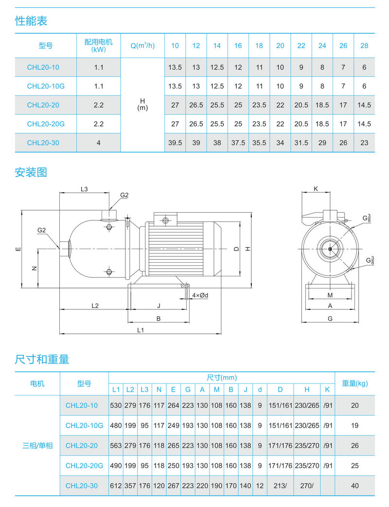 南方卧式不锈钢多级离心泵CHL20-10/20/30