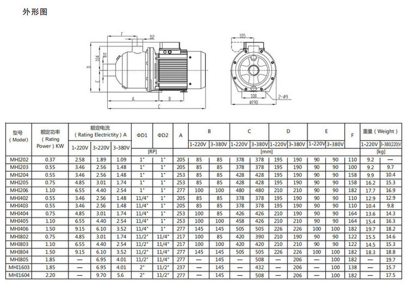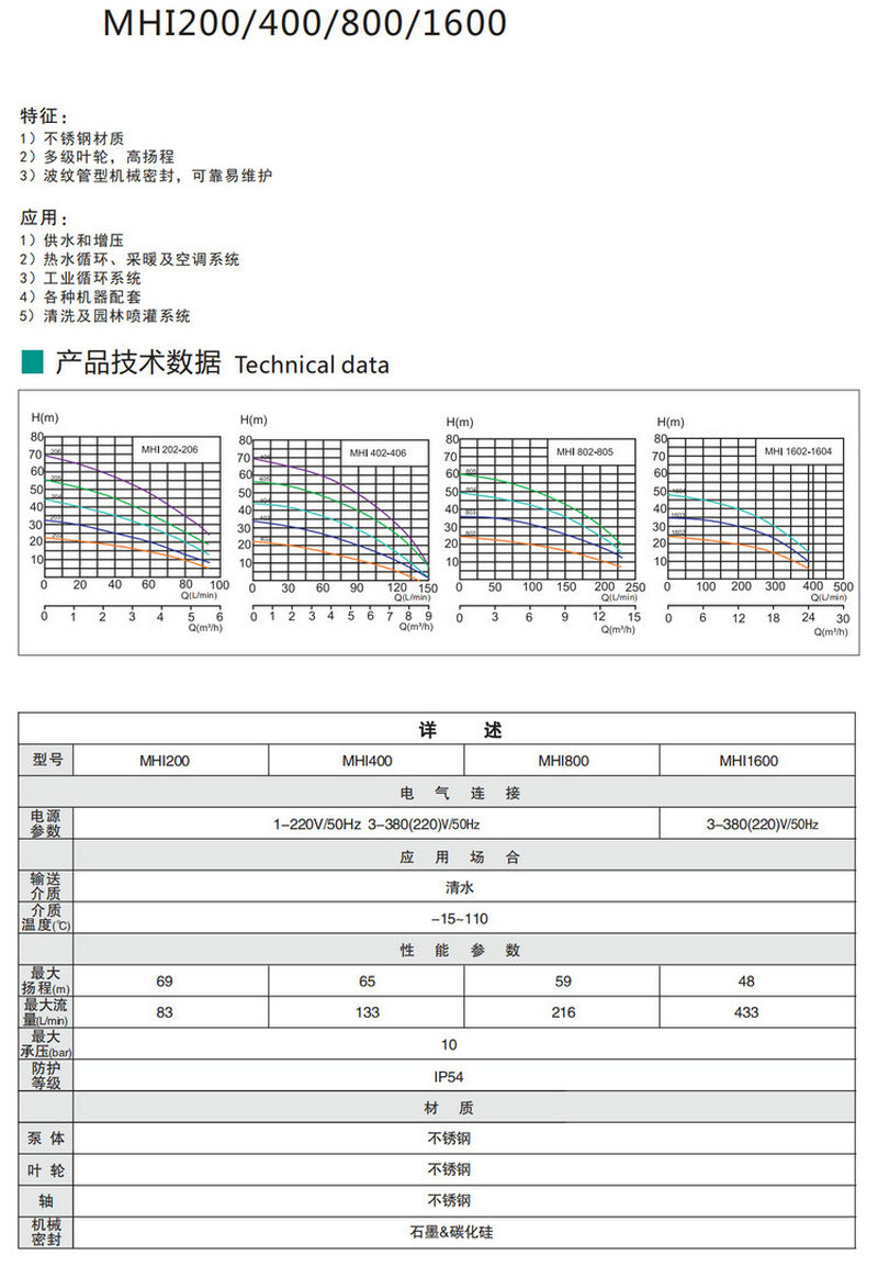 【新沪】热水卧式多级离心泵MHI-202-206/402-406/802-805/1602-1604