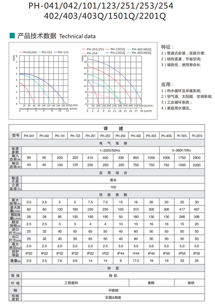【新沪】热水循环泵PH-041/042/101/123/251/253/254/402/403/403Q/1501Q/2201Q